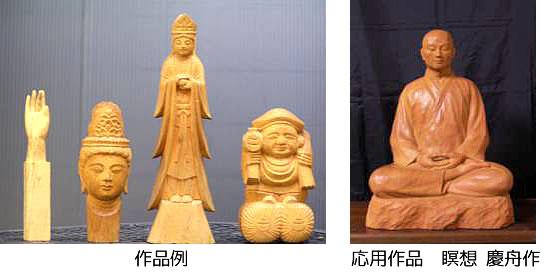 地紋彫、仏足、仏手、仏頭、大黒天、 救世観音、その他自由な発想による作品。 (基本的には松久朋琳著 仏像彫刻のすすめによるもの)